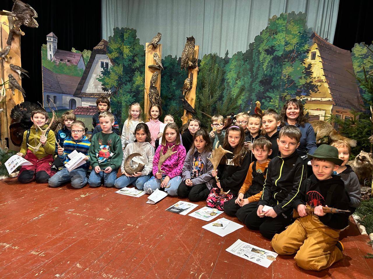 26.02.2026 08:18Ve čtvrtek 19. února jsme měli netradičně sraz v šatně, abychom zahájili vyučování v kulturním domě. Tam na nás čekala myslivecké výstava s úkoly. Myslivkyně a myslivci z Mysliveckého spolku Čihadlo si nás rozdělili do družstev a plnili jsme různorodé úkoly zaměřené na život v lese. Zavzpomínali jsme na prvouku při poznávání stromů, procvičili češtinu luštěním křížovky, protáhli tělo při házení brambor a oříšků do ztrouchnivělého pařezu, hledali, co do lesa nepatří nebo „krmili“ lesní živočichy. Také jsme se dozvěděli nové informace a odpověď na zapeklitou otázku z písanky Má jelen rohy?